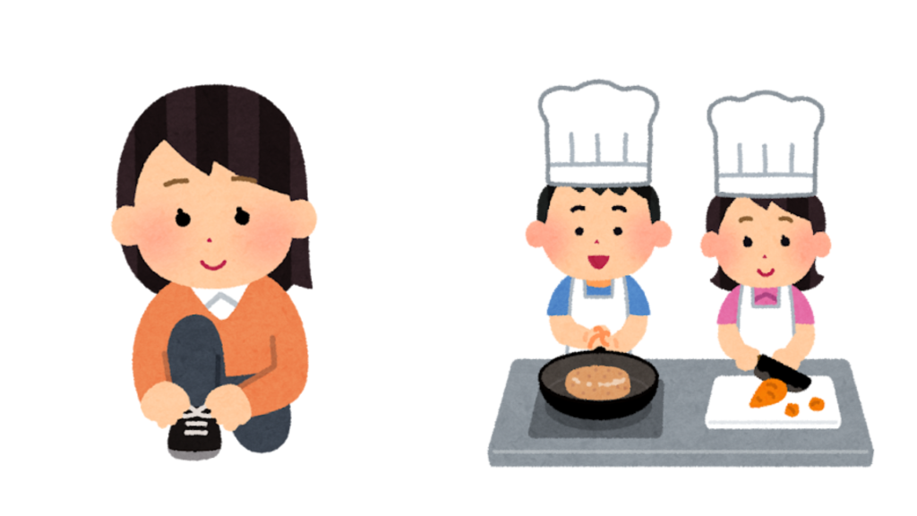 ・日常動作機能訓練(靴ひも、チャック、ボタン、等)